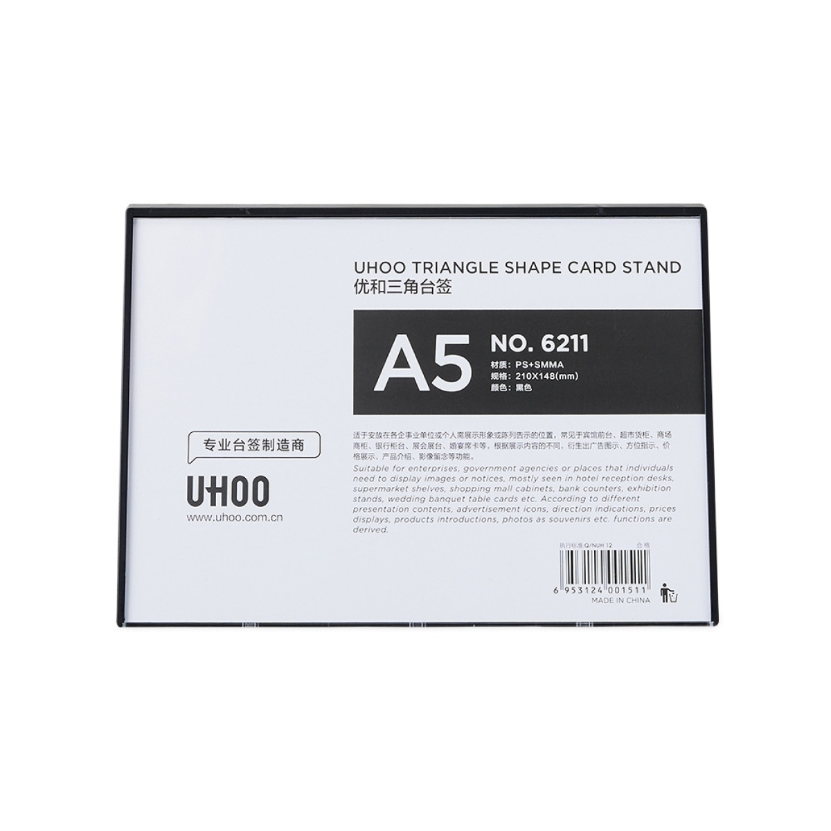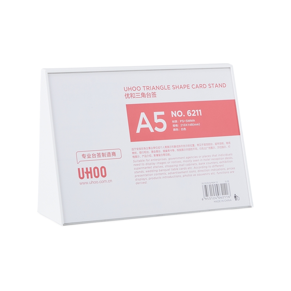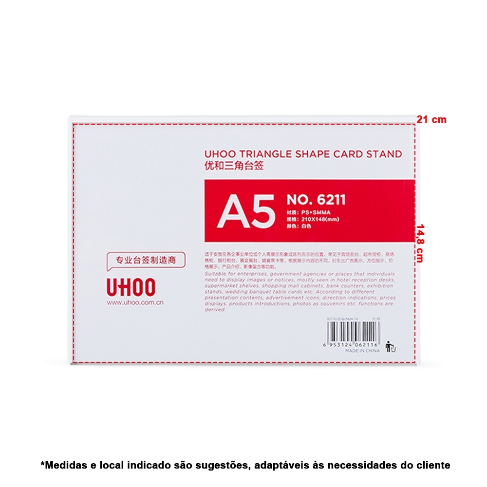 Descrição: Expositor porta retrato A5 feito em poliestireno com placa acrílica.