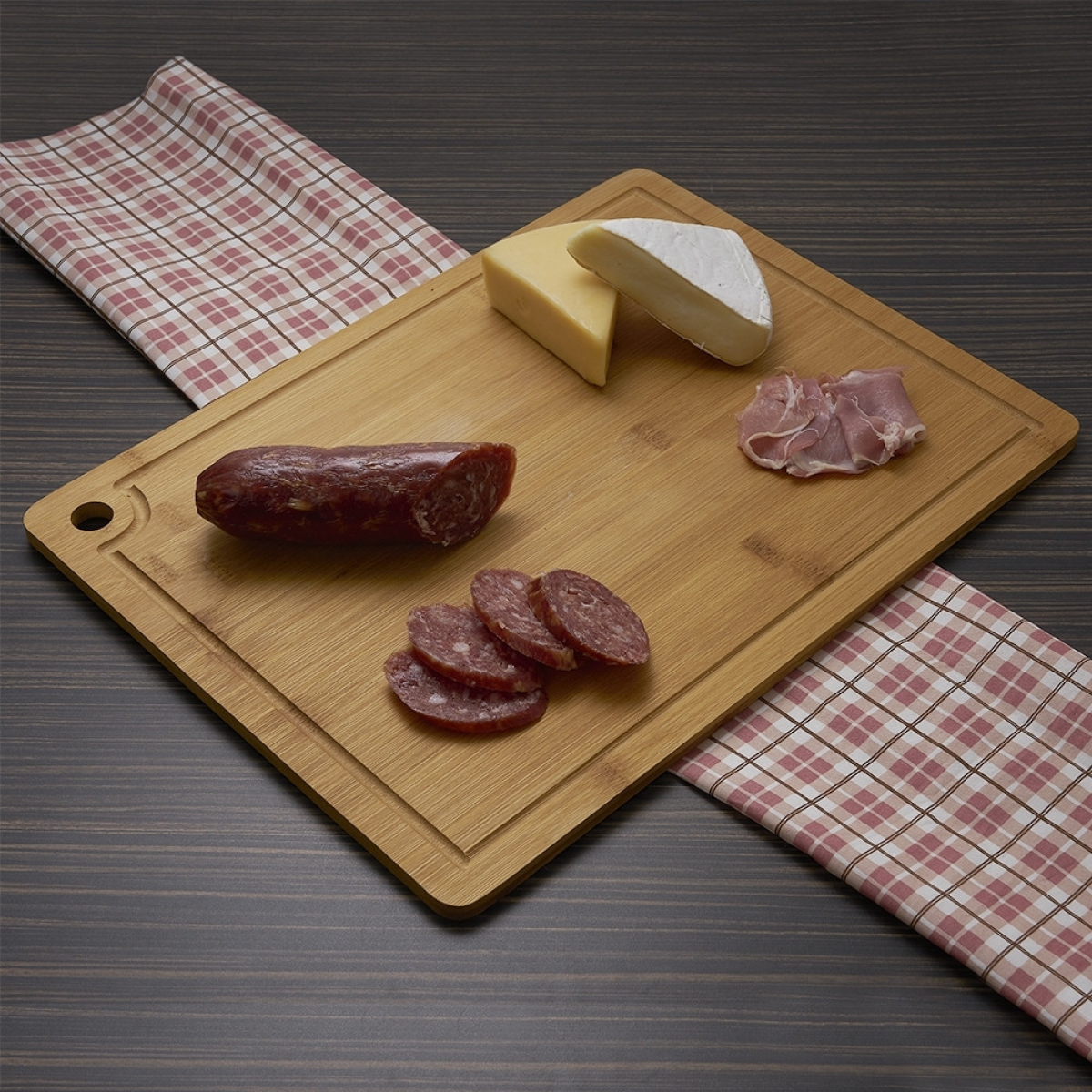 Descrição: Tábua de corte com canaleta e acesso para gancho.